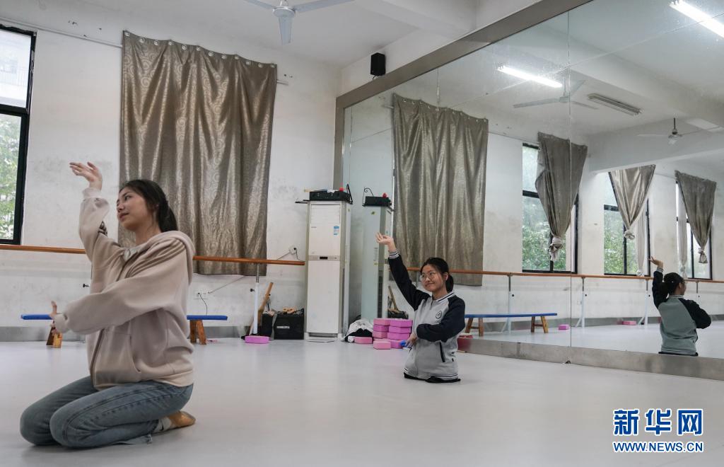 2021年5月11日,蔣張子怡(右)和同學在舞蹈房內練習舞蹈。