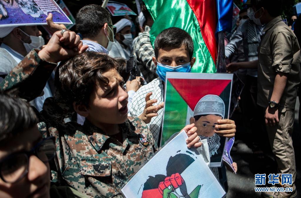 5月16日,人們在伊朗首都德黑蘭舉行抗議示威活動,聲援巴勒斯坦民眾。