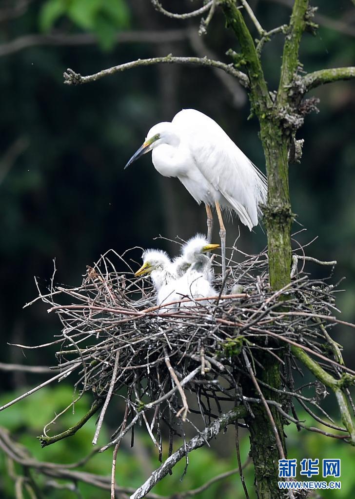在南昌市新建區象山森林公園內,白鷺和雛鳥們在一起(5月18日攝)。