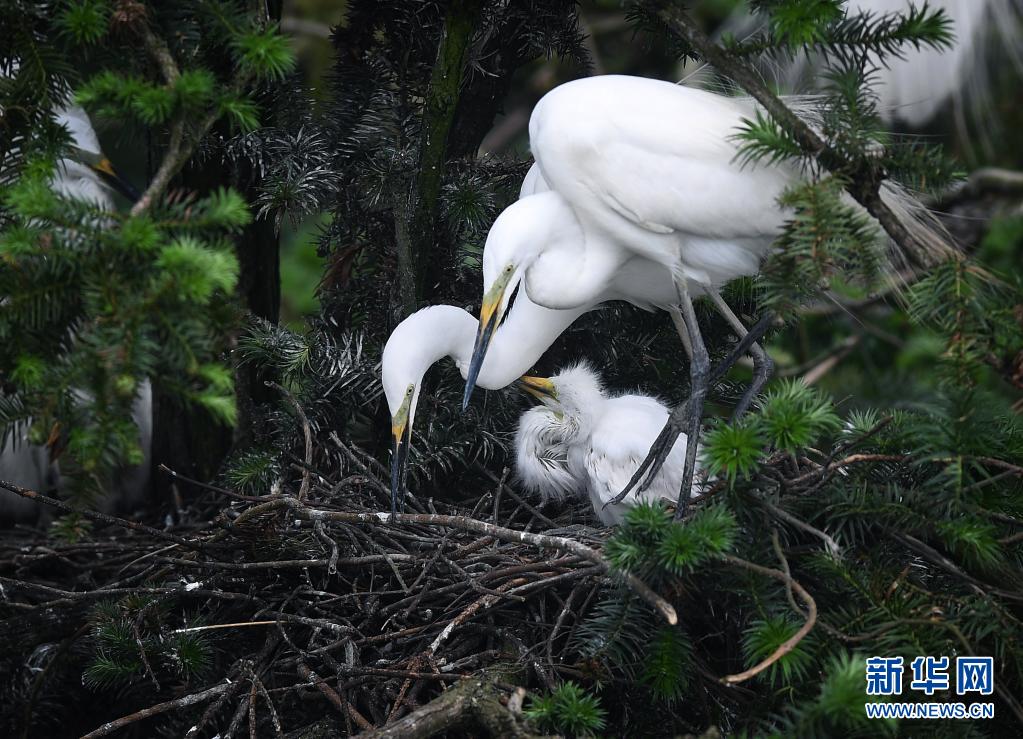 在南昌市新建區象山森林公園內,白鷺和雛鳥們在一起(5月18日攝)。