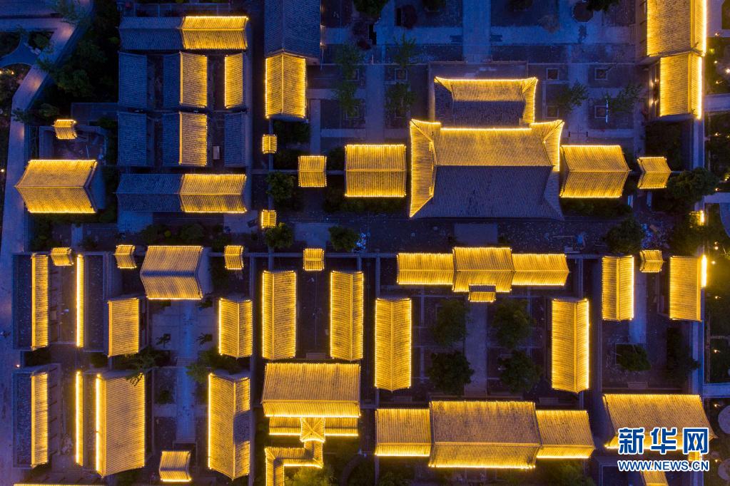 夜幕降臨,位于山西省太原市晉源區(qū)的太原古縣城流光溢彩,游人如織。太原古縣城始建于明代,占地面積約0.8平方公里,因其造型像一只飛鳥(niǎo),也被譽(yù)為“鳳凰城”。歷經(jīng)8年修繕后,太原古縣城于2021年5月重新對(duì)外開(kāi)放。