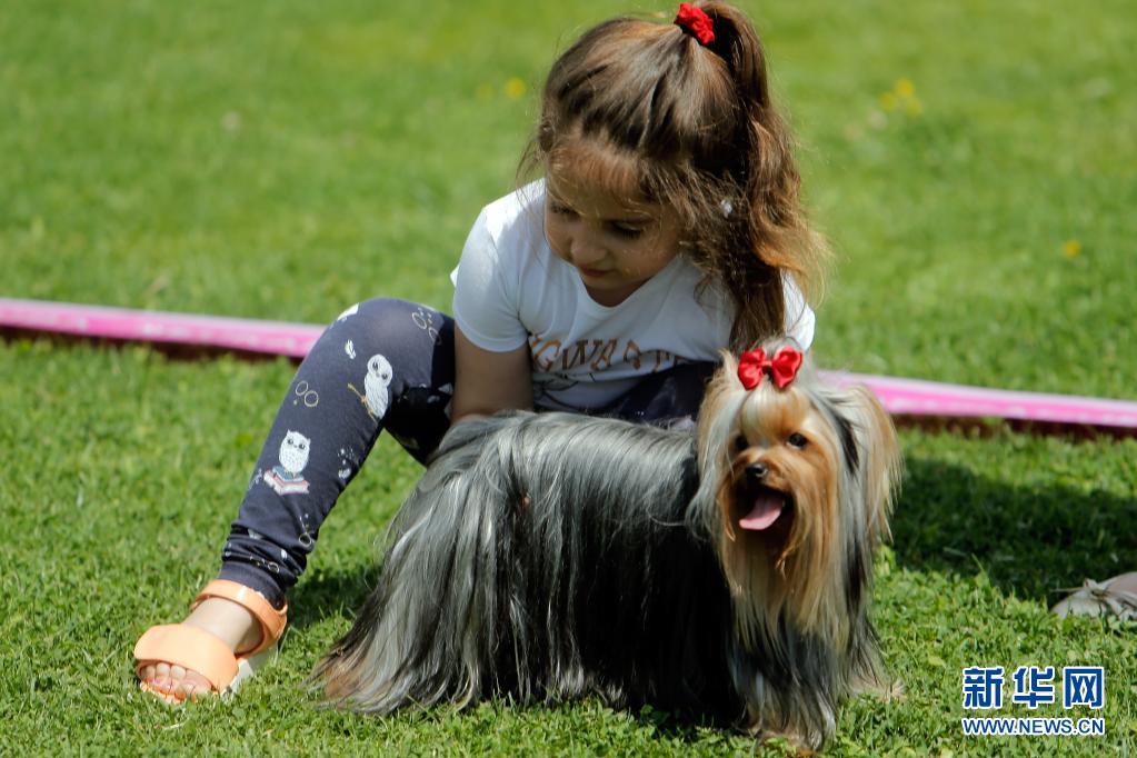 5月23日,一只約克夏梗犬在羅馬尼亞首都布加勒斯特參加選美比賽。新華社發(克里斯泰爾攝)