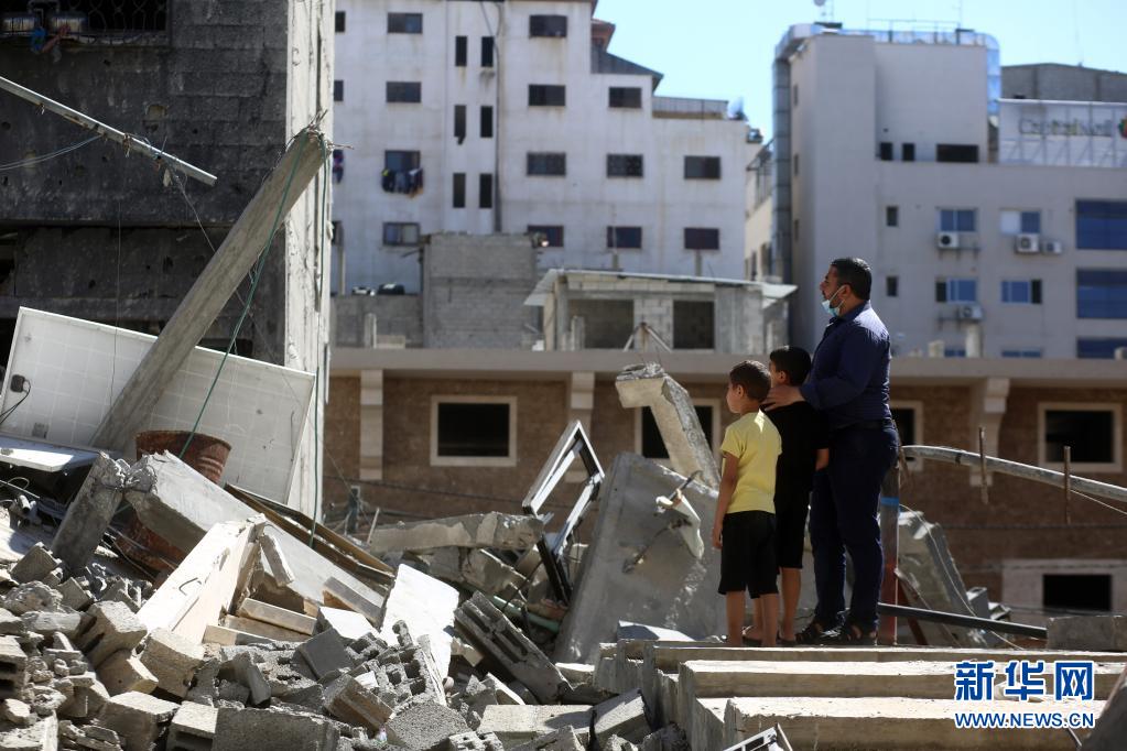 5月23日,巴勒斯坦人在加沙城望著遭以軍空襲損毀的房屋。5月10日以來,以色列與加沙地帶武裝組織之間爆發嚴重沖突。20日晚,哈馬斯與以色列方面各自宣布,雙方已達成停火協議,停火從21日凌晨開始。新華社發(里澤克·阿卜杜勒·賈瓦德攝)