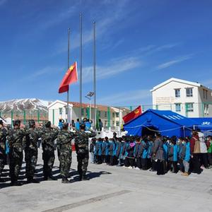 當日是青海果洛瑪多縣花石峽鎮藏文中心寄宿制小學震后復學第一天,學校邀請他以“國家、奮斗、團結”為主題,和孩子們進行交流。