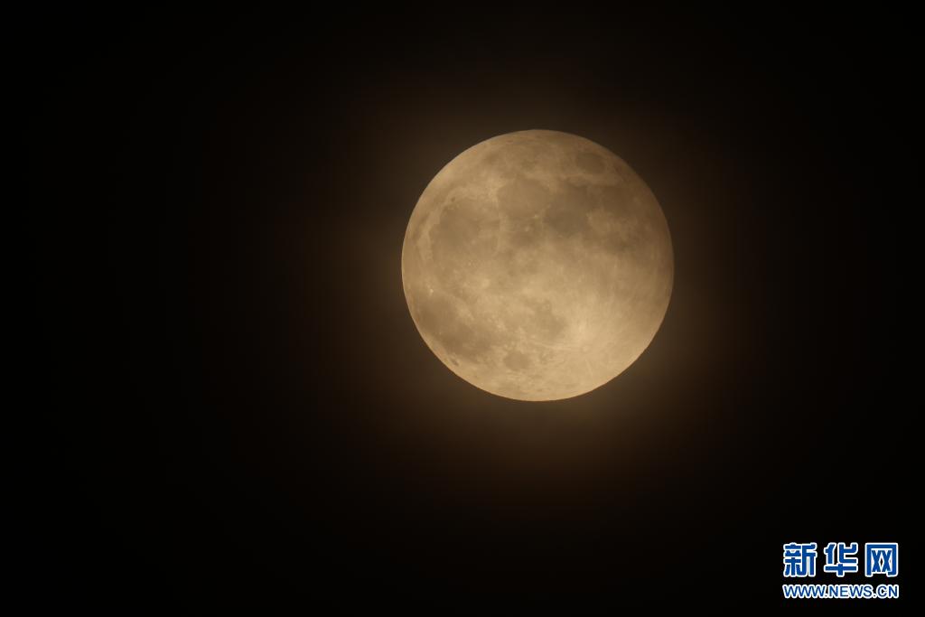 當日,本年度“最大最圓月(也稱‘超級月亮’)”與月全食(也稱“紅月亮”)浪漫“邂逅”。