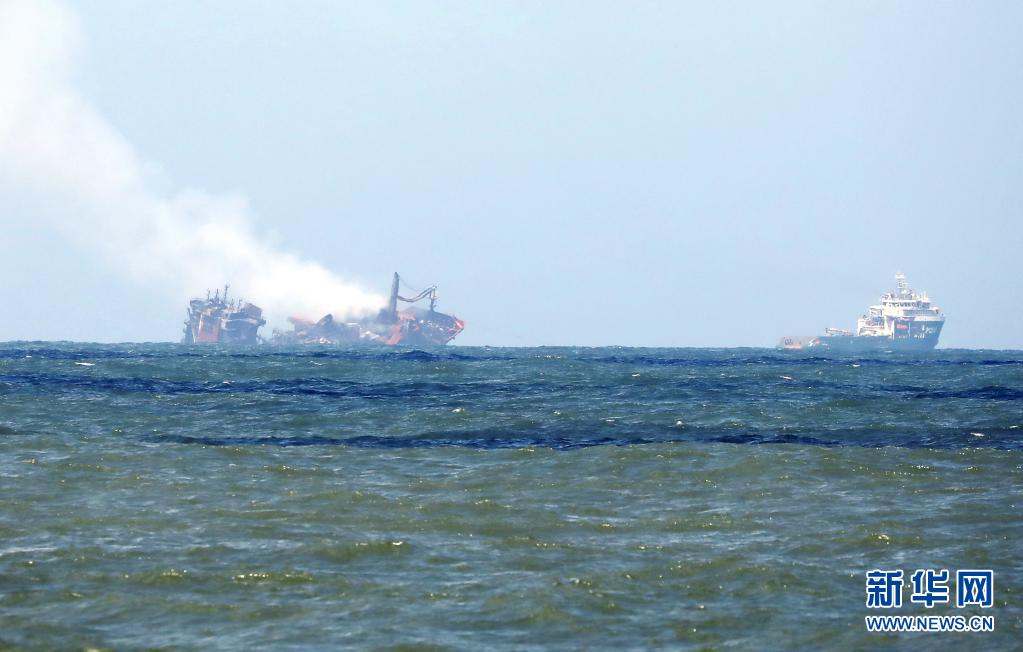 6月2日,斯里蘭卡總統(tǒng)戈塔巴雅下令將起火貨船“X-PRESS PEARL”號拖向遠離科倫坡港的深海區(qū),以防引發(fā)更大的環(huán)境災(zāi)難?!癤-PRESS PEARL”號貨船5月20日抵達科倫坡港西北約9.5海里錨地時發(fā)出火警求救信號。斯里蘭卡海洋環(huán)境保護局官員5月28日表示,在科倫坡港附近起火燃燒的“X-PRESS PEARL”號貨船預(yù)計將會引發(fā)嚴重環(huán)境災(zāi)難。新華社發(fā)(阿吉特·佩雷拉攝)