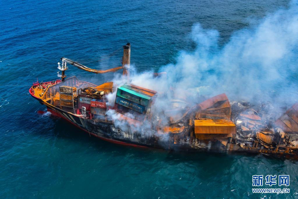 6月2日,斯里蘭卡總統(tǒng)戈塔巴雅下令將起火貨船“X-PRESS PEARL”號拖向遠(yuǎn)離科倫坡港的深海區(qū),以防引發(fā)更大的環(huán)境災(zāi)難。“X-PRESS PEARL”號貨船5月20日抵達(dá)科倫坡港西北約9.5海里錨地時發(fā)出火警求救信號。斯里蘭卡海洋環(huán)境保護(hù)局官員5月28日表示,在科倫坡港附近起火燃燒的“X-PRESS PEARL”號貨船預(yù)計將會引發(fā)嚴(yán)重環(huán)境災(zāi)難。新華社發(fā)(斯里蘭卡空軍媒體處供圖)