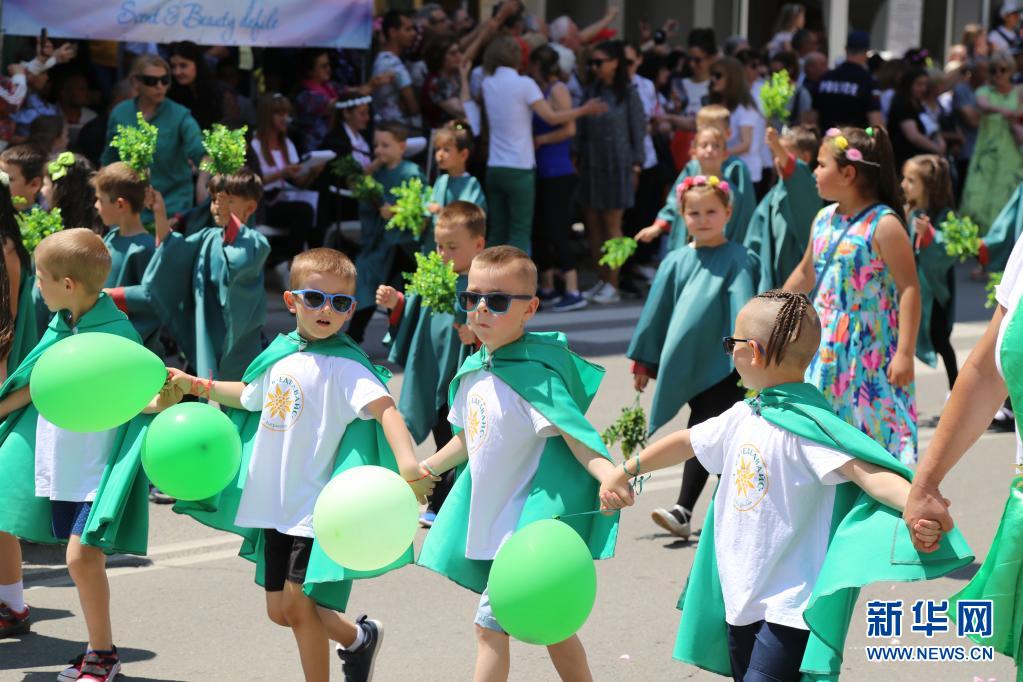 6月6日,在保加利亞卡贊勒克,小朋友參加玫瑰節游行。