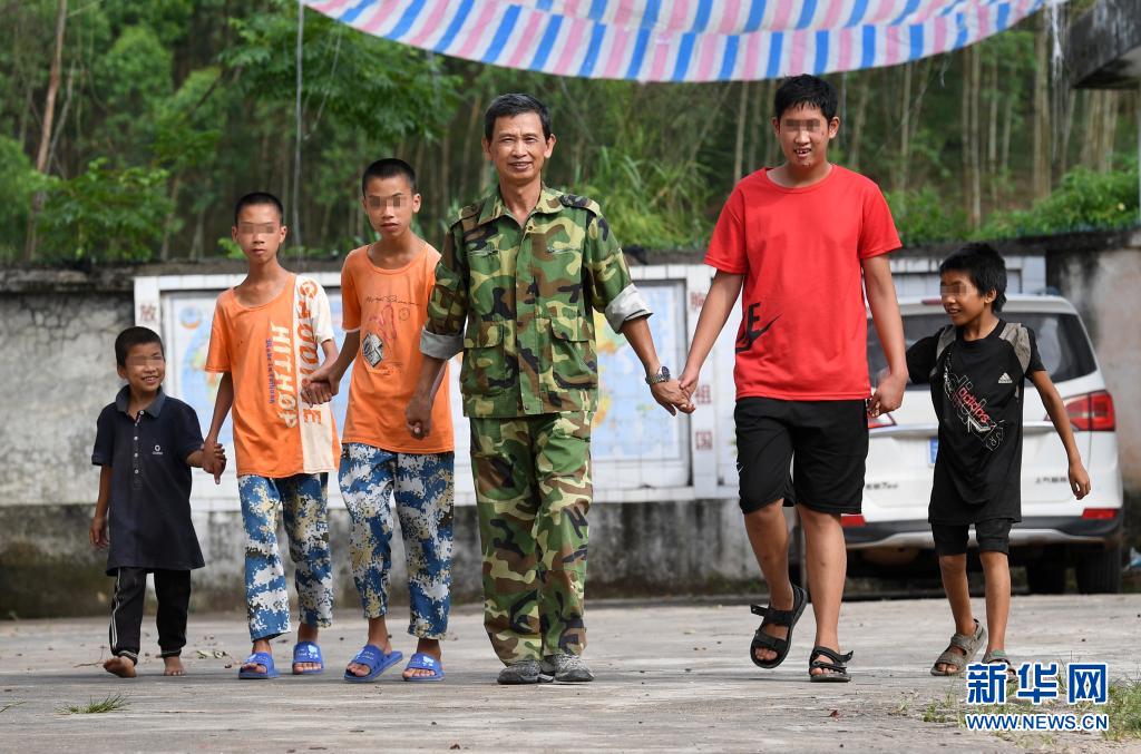 在廣西十萬大山北麓莽莽群山間,61歲的退休黨員教師梁志雄,繼續堅守已經站了40多年的講臺,演繹著一名老師陪伴五名殘障學生的感人故事。