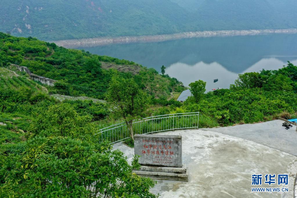 紅軍搶渡烏江江界河戰斗遺址紀念碑(5月20日攝,無人機照片)。新華社記者 歐東衢 攝