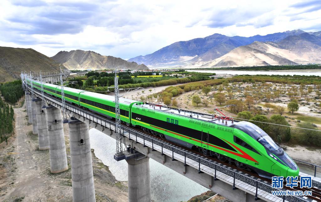 試運行的復興號列車行駛在西藏山南市境內(6月16日攝)。