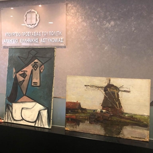 希臘警方28日在距離首都雅典大約50公里處的一座倉庫中發現國立美術館2012年失竊的一幅畢加索作品《女人頭像》。在同一行動中,警方還發現國立美術館另一失竊作品,即荷蘭畫家皮特·蒙德里安1905年創作的《磨坊》。蒙德里安畫作發現時已有損壞。警方在行動中逮捕了一名現年49歲的男子。新華社發