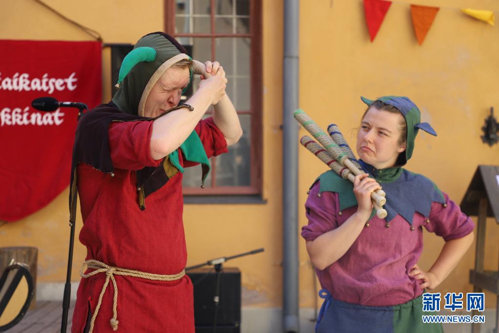 7月1日,演員在芬蘭圖爾庫舉行的“中世紀市集”上表演。
