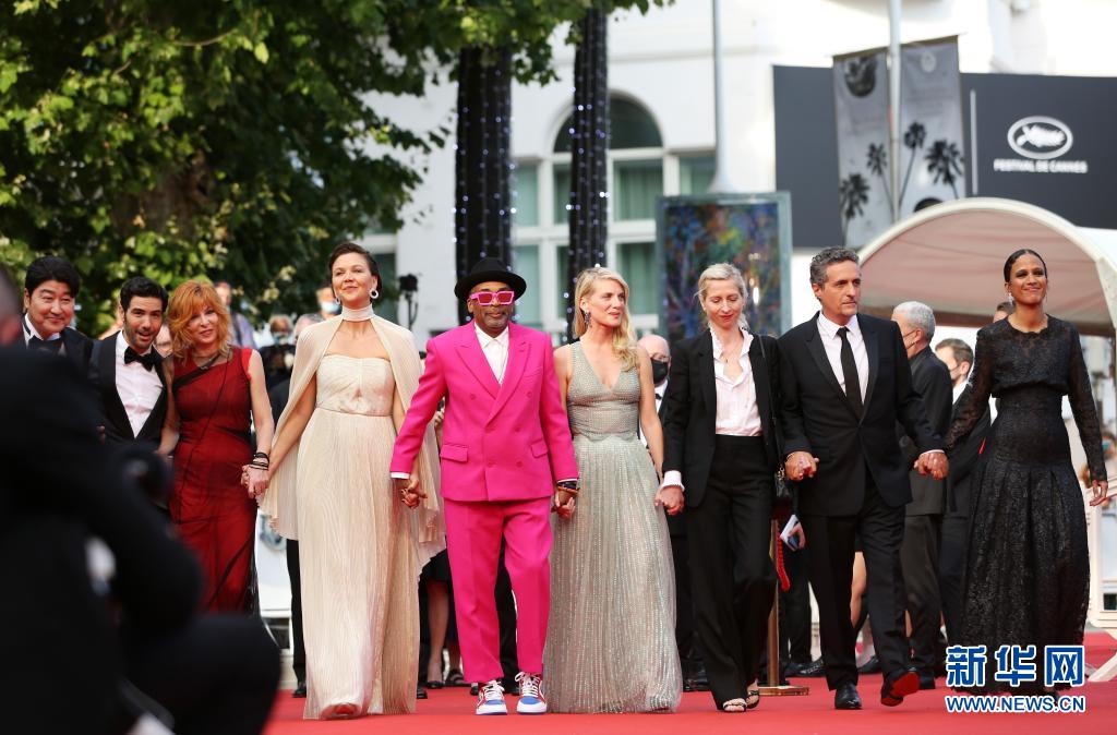 7月6日,第74屆法國戛納國際電影節主競賽單元評委會主席、美國導演和制片人斯派克·李(中)攜主競賽單元評委出席開幕式紅毯。
