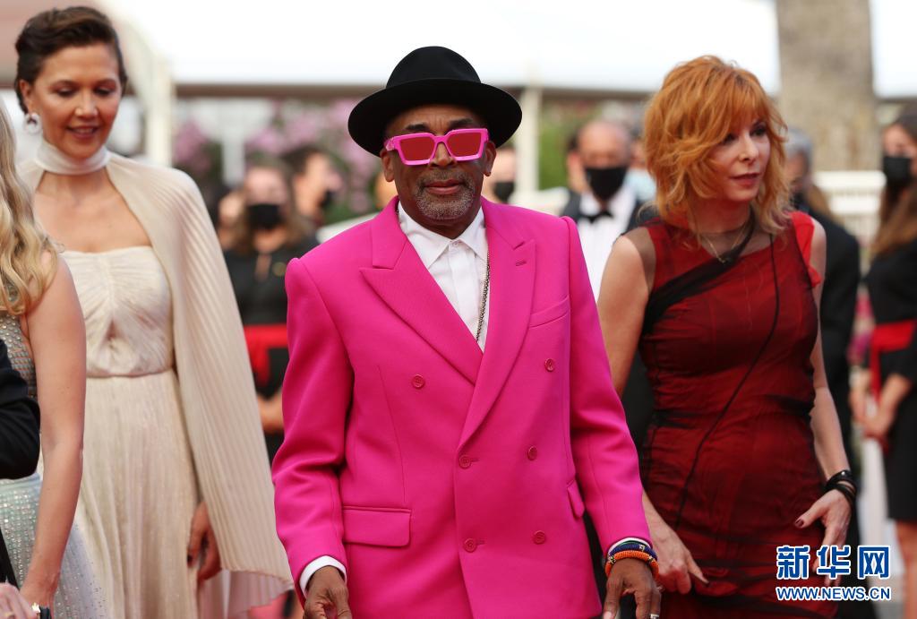 7月6日,第74屆法國戛納國際電影節主競賽單元評委會主席、美國導演和制片人斯派克·李(中)攜主競賽單元評委出席開幕式紅毯。