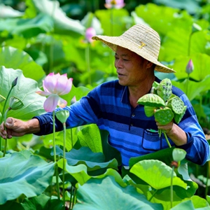 盛夏時(shí)節(jié),湖南省湘潭市雨湖區(qū)姜畬鎮(zhèn)聯(lián)映村的蓮蓬逐漸成熟,當(dāng)?shù)厣忁r(nóng)忙著采摘蓮蓬、荷花。近年來(lái),當(dāng)?shù)卮罅Πl(fā)展“蓮子經(jīng)濟(jì)”,特色產(chǎn)業(yè)帶動(dòng)村民增收致富。