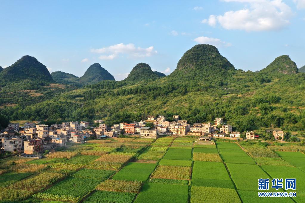 盛夏時節(jié),廣西平樂縣張家鎮(zhèn)田園郁郁蔥蔥,美不勝收(7月14日攝,無人機(jī)照片)。