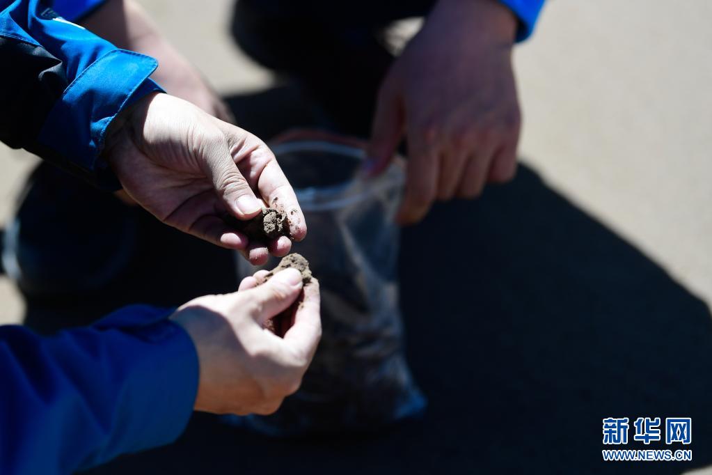 2021年長江源綜合科考的科考隊員在通天河流域采集土樣(7月24日攝)。