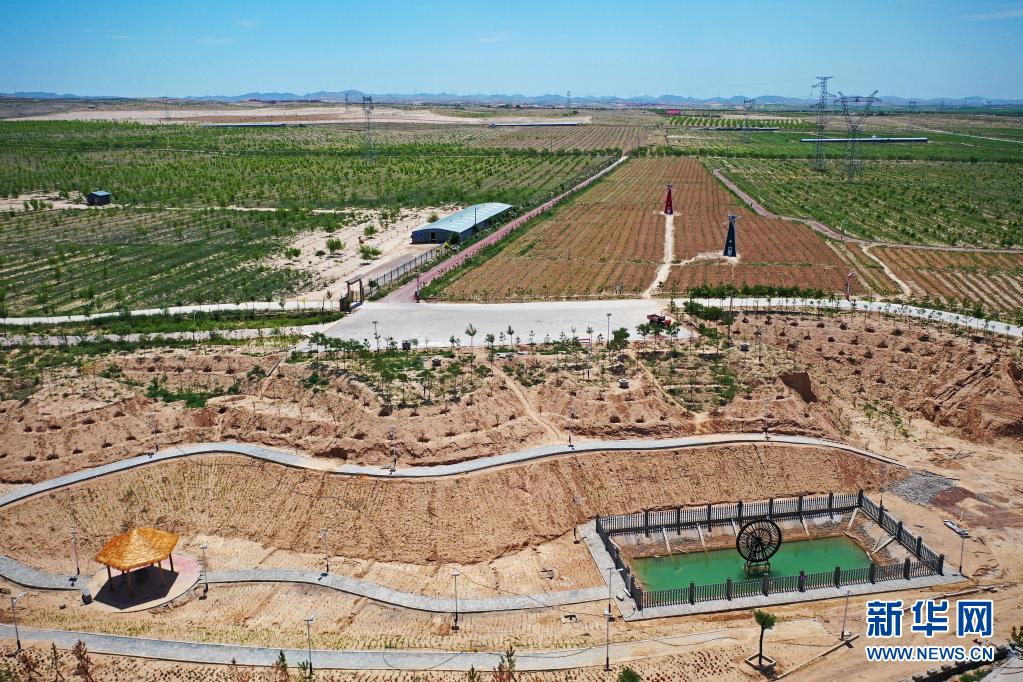 這是旱塬上的寧夏同心縣圣峰休閑生態觀光園(6月22日攝,無人機照片)。新華社記者 楊植森 攝