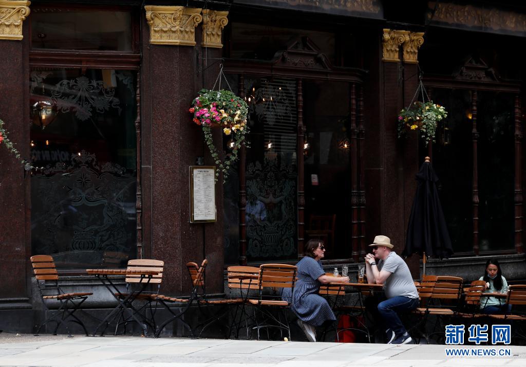 7月26日,人們坐在英國(guó)倫敦市中心一家酒吧的戶外餐飲區(qū)。