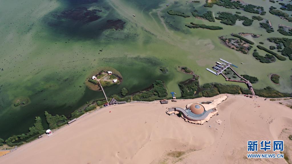 夏日時節,地處寧夏石嘴山市平羅縣的沙湖景區內,葦綠沙黃、碧波蕩漾。