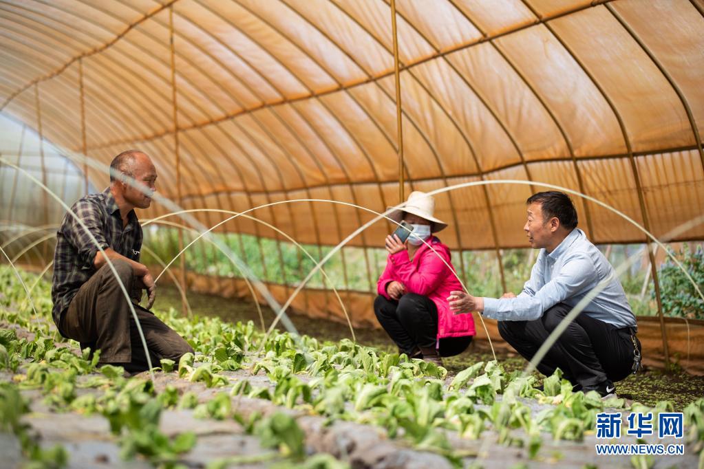8月13日,在四川省阿壩藏族羌族自治州紅原縣邛溪鎮熱坤村的蔬菜大棚,農業技術推廣研究員茍俊(右)在給蔬菜種植大戶答疑解惑。