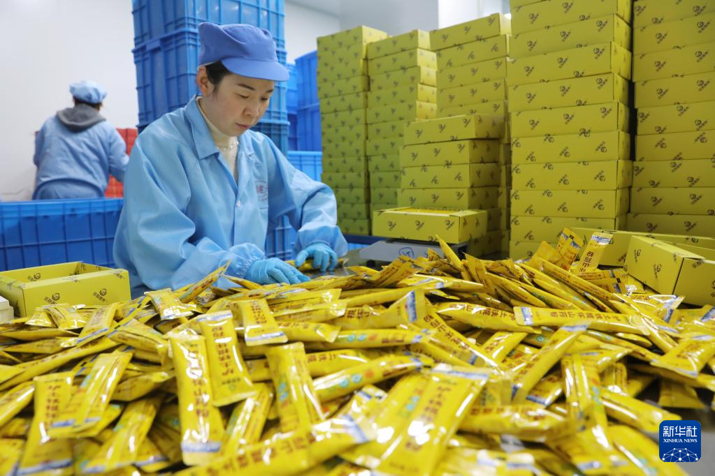 12月11日,河南省焦作市温县一家山药加工企业职工在包装铁棍山药粉。