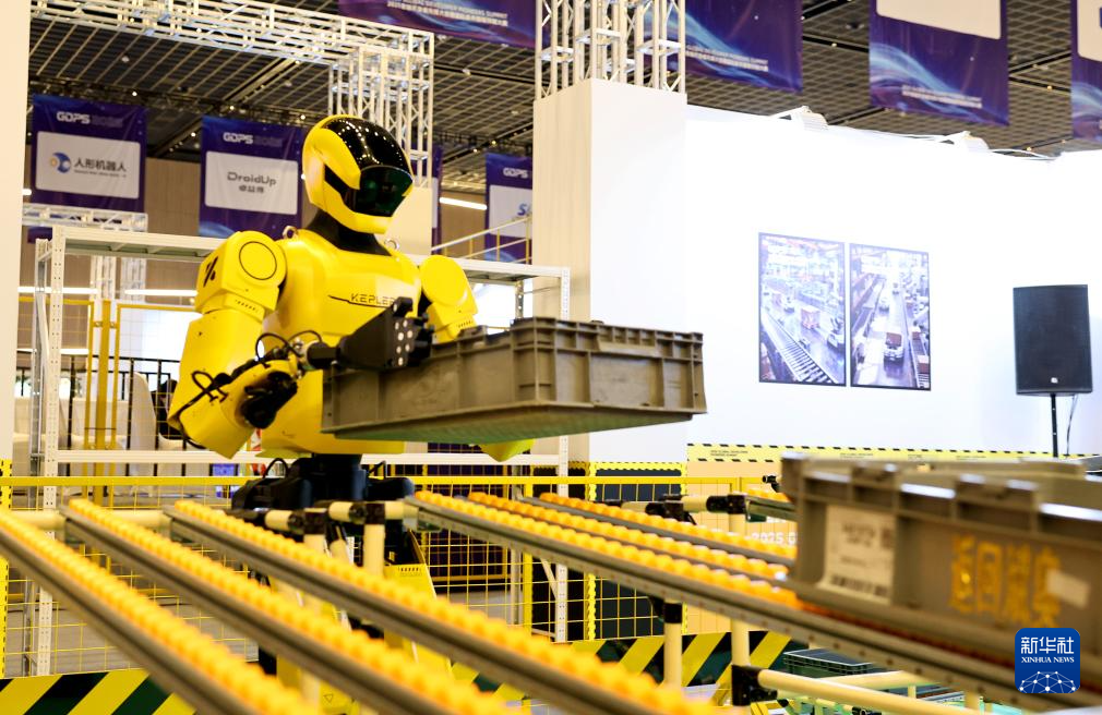 12月12日,机器人在工厂搬运竞技场进行货物转运比赛。
