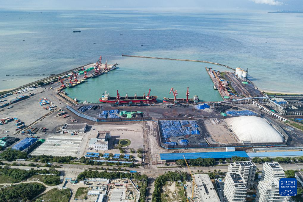 在海南自贸港重点园区——东方临港产业园拍摄的八所港(无人机照片,11月7日摄)。