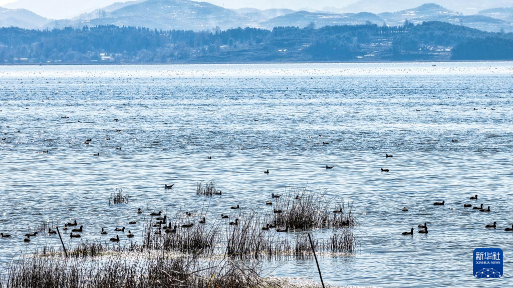 冬日时节,贵州草海国家级自然保护区迎来大批越冬候鸟。成群结队的候鸟或在水中嬉戏觅食,或在空中展翅翱翔,呈现出一幅冬日生态画卷。