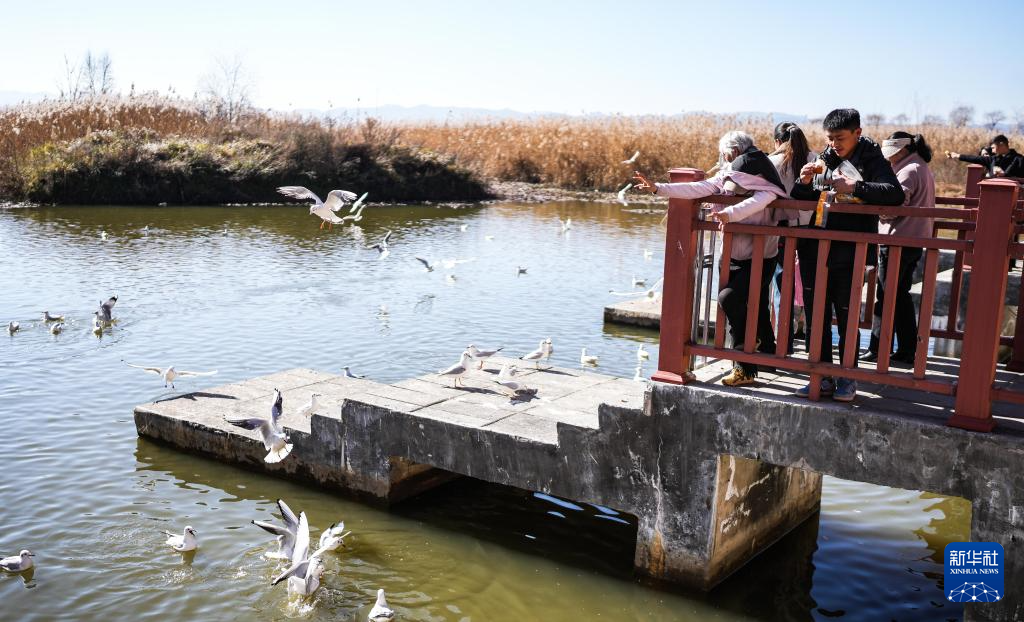 12月12日,市民在贵州草海国家级自然保护区观赏越冬候鸟。