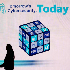 1月28日,在以色列“特拉维夫火花创新峰会”上,一名展商介绍一款人工智能环境下的网络安全传输设备。