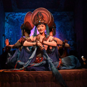 1月9日晚,游客观看大型洞窟沉浸式体验剧《乐动敦煌》。