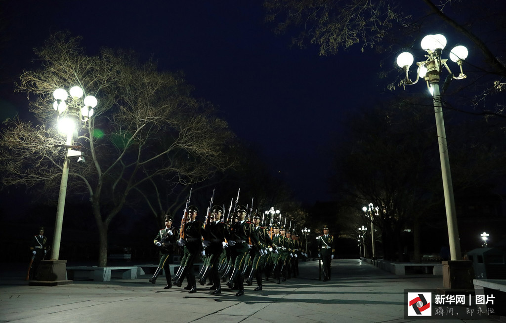 2017年3月5日,第十二屆全國人民代表大會第五次會議在人民大會堂開幕。凌晨4點的長安街,夜色還未褪去,位于故宮午門前一側的一座武警營區內,卻已是燈火通明。一群武警戰士穿起禮兵服、握緊鋼槍開始訓練。晨曦微露,從金水橋到國旗桿下,138步、2分07秒、365天,無論雨雪風霜、嚴寒酷暑,他們都守護著五星紅旗冉冉升起。這支部隊就是武警北京總隊天安門支隊國旗護衛隊。