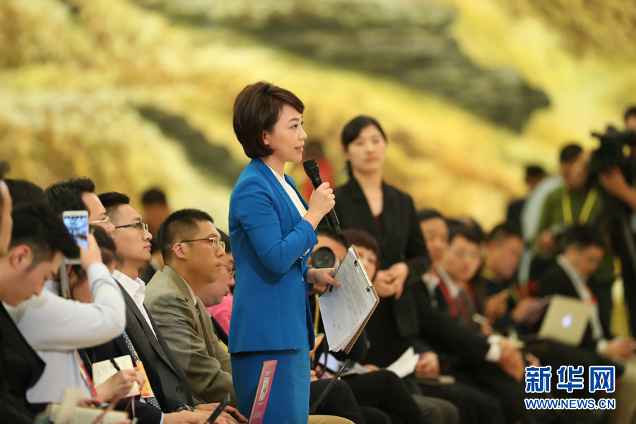 2017年10月17日下午,中國共產(chǎn)黨第十九次全國代表大會新聞發(fā)言人在人民大會堂三樓金色大廳舉行新聞發(fā)布會,并回答中外記者提問。圖為中央電視臺記者提問。新華網(wǎng) 翟子赫 攝