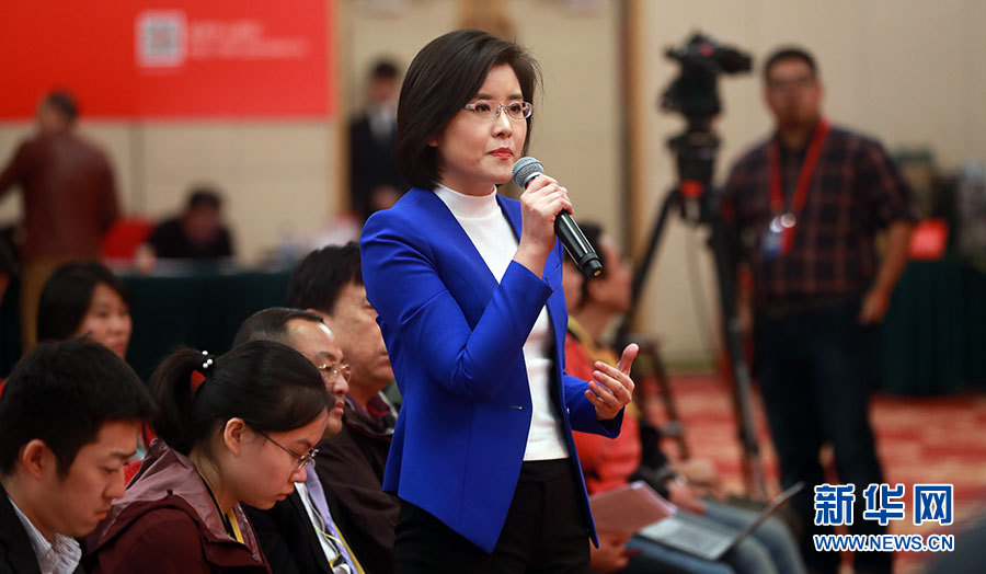 ??? 10月19日,十九大新聞中心舉辦集體采訪,邀請工信和通訊領域代表談走新型工業化道路。圖為中央電視臺、中國國際電視臺記者提問。新華網 郝廣鵬攝