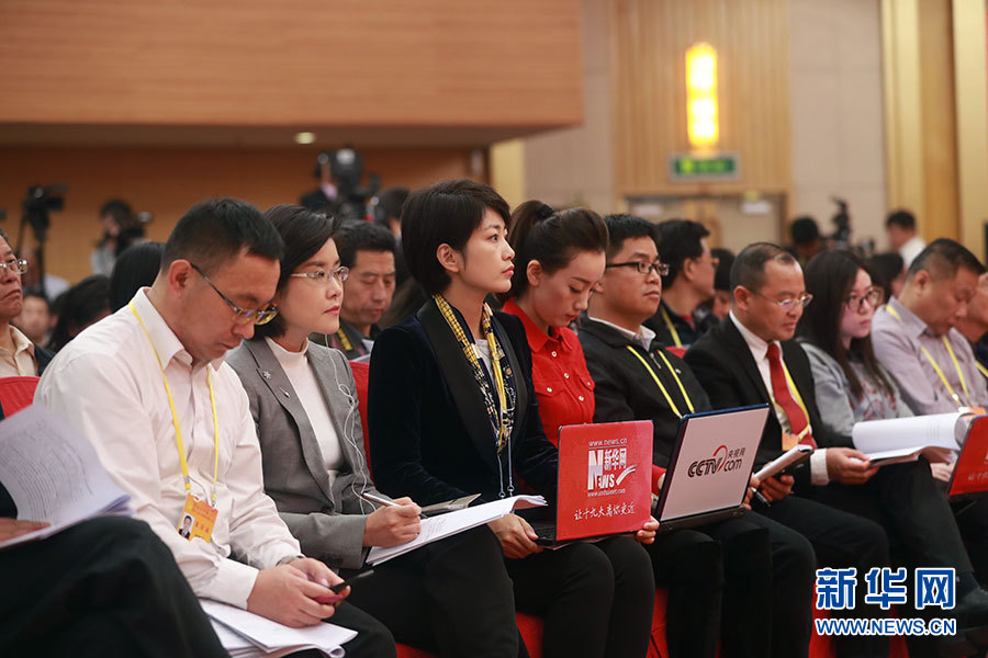 ??? 10月20日,十九大新聞中心舉行記者會,邀請中宣部、中央文明辦、文化部、新聞出版廣電總局相關負責人介紹加強思想道德和文化建設情況,并回答記者提問。圖為記者會現場。新華網 郝廣鵬 攝
