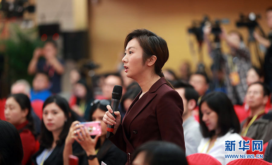 ??? 10月20日,十九大新聞中心舉辦集體采訪活動,主題為“文化發(fā)展開創(chuàng)新局面”。圖為中國國際電視臺記者提問。新華網(wǎng) 陳杰攝