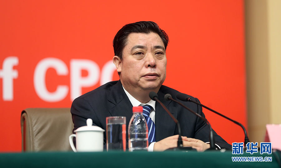 ??? 10月21日,十九大新聞中心舉辦記者招待會(huì),邀請(qǐng)中共中央統(tǒng)戰(zhàn)部常務(wù)副部長(zhǎng)張裔炯、副部長(zhǎng)冉萬祥,中共中央對(duì)外聯(lián)絡(luò)部副部長(zhǎng)郭業(yè)洲介紹黨的統(tǒng)一戰(zhàn)線工作和黨的對(duì)外交往情況,并回答記者提問。圖為中共中央統(tǒng)戰(zhàn)部副部長(zhǎng)冉萬祥。新華網(wǎng) 郝廣鵬攝