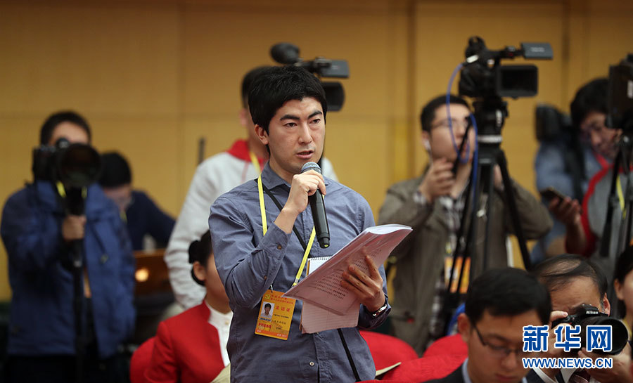 ??? 10月21日,十九大新聞中心舉辦記者招待會,邀請中共中央統戰部常務副部長張裔炯、副部長冉萬祥,中共中央對外聯絡部副部長郭業洲介紹黨的統一戰線工作和黨的對外交往情況,并回答記者提問。圖為日本共同社記者提問。新華網 郝廣鵬攝