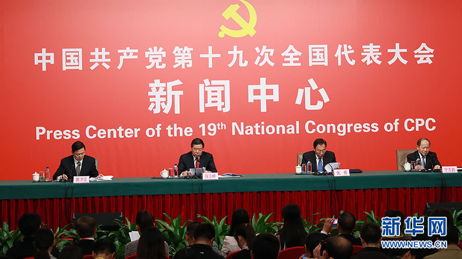 ??? 10月21日,十九大新聞中心舉辦記者招待會,邀請國家發(fā)展改革委黨組書記、主任何立峰,副主任張勇,副主任寧吉喆介紹以新發(fā)展理念為引領,推進中國經濟平穩(wěn)健康可持續(xù)發(fā)展有關情況,并回答記者提問。圖為記者招待會現場。新華網 郝廣鵬攝