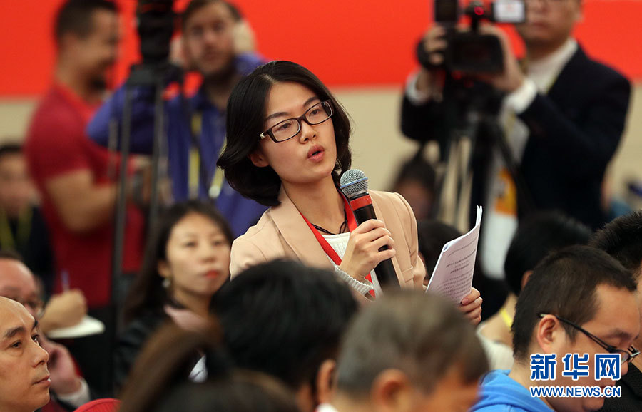10月21日,十九大新聞中心舉辦記者招待會,邀請國家發(fā)展改革委黨組書記、主任何立峰,副主任張勇,副主任寧吉喆介紹以新發(fā)展理念為引領(lǐng),推進(jìn)中國經(jīng)濟(jì)平穩(wěn)健康可持續(xù)發(fā)展有關(guān)情況,并回答記者提問。圖為中國新聞社記者提問。新華網(wǎng) 郝廣鵬攝