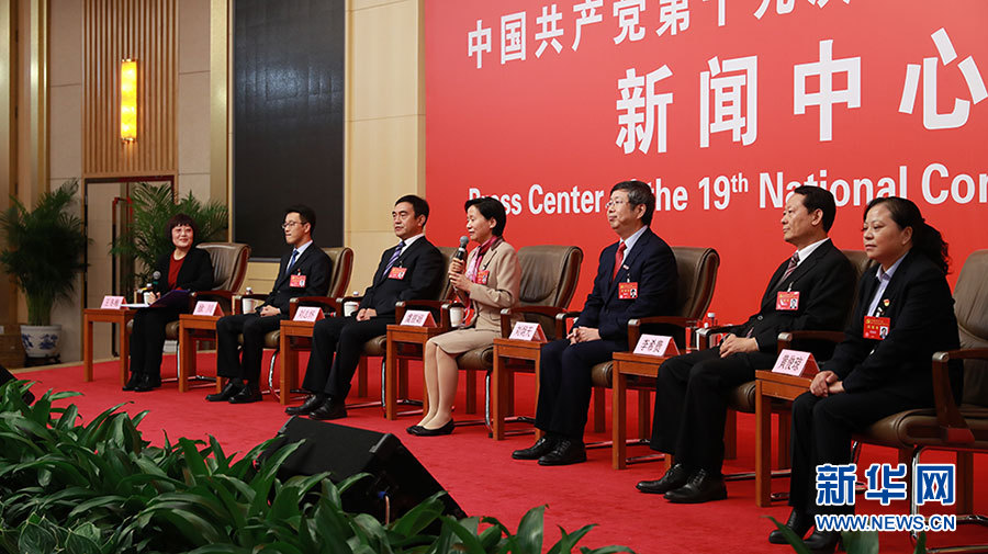 10月22日,十九大新聞中心在梅地亞中心二層新聞發布廳舉辦集體采訪活動,邀請教育領域代表談“教育綜合改革”。圖為集體采訪活動現場。新華網 郝廣鵬攝