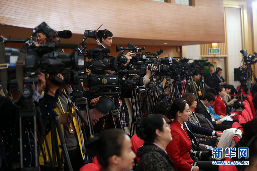 10月22日,十九大新聞中心在梅地亞中心二層新聞發(fā)布廳舉辦集體采訪活動(dòng),邀請(qǐng)教育領(lǐng)域代表談“教育綜合改革”。圖為集體采訪活動(dòng)現(xiàn)場(chǎng)。新華網(wǎng) 郝廣鵬攝