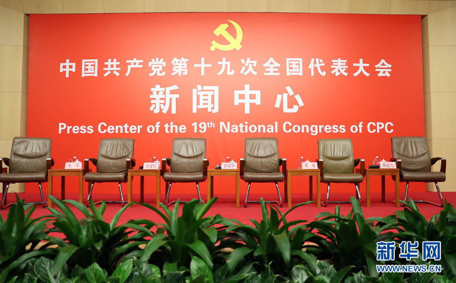 10月23日,十九大新聞中心舉辦集體采訪活動,主題為“打好生態環保攻堅戰”。圖為集體采訪活動現場。新華網 郝廣鵬攝
