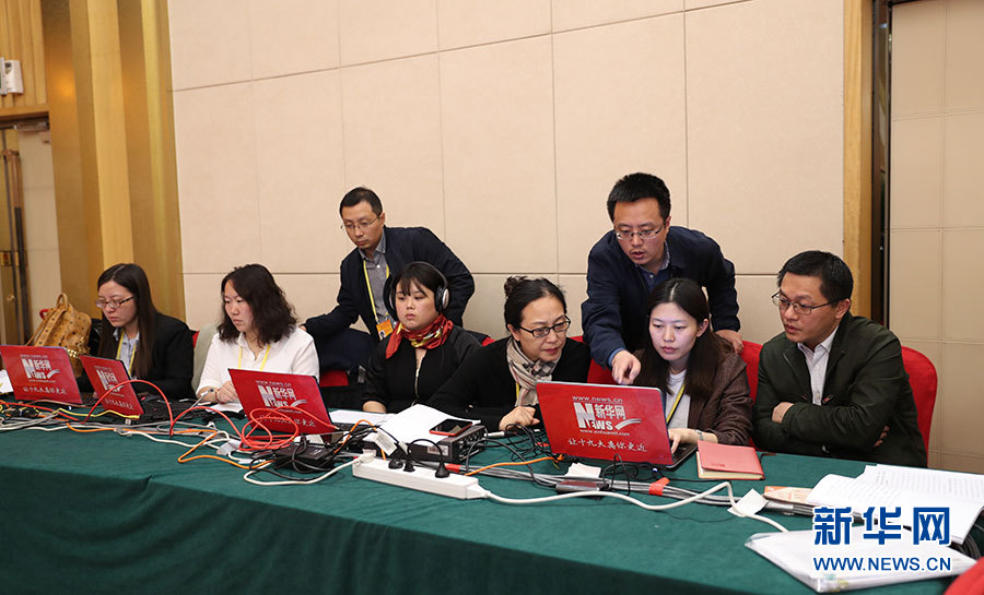 10月23日,十九大新聞中心舉辦集體采訪活動,主題為“打好生態環保攻堅戰”。圖為新華網現場直播。新華網 郝廣鵬攝