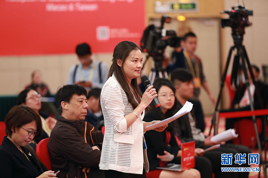 10月23日,十九大新聞中心舉辦集體采訪活動,主題為“打好生態(tài)環(huán)保攻堅戰(zhàn)”。圖為中國冶金報記者提問。新華網(wǎng) 郝廣鵬攝