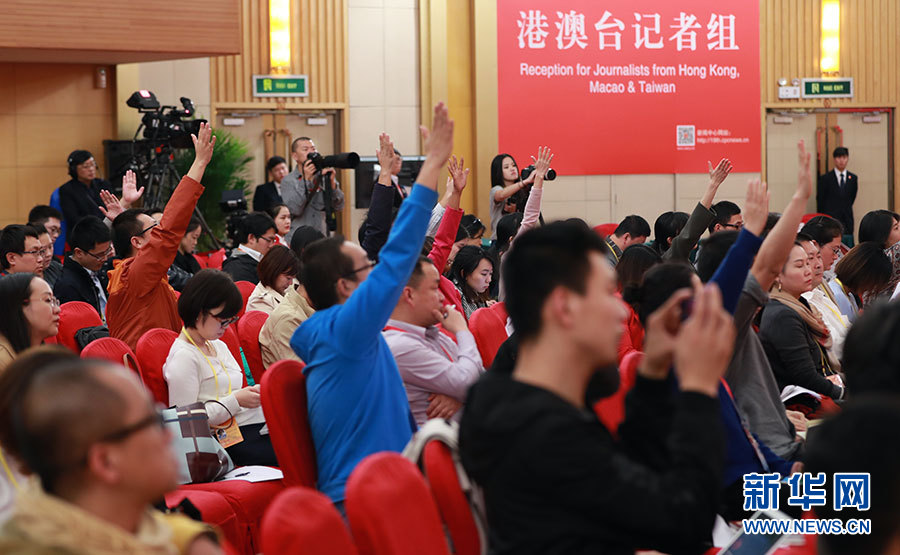 10月23日,十九大新聞中心舉辦集體采訪活動,主題為“打好生態(tài)環(huán)保攻堅戰(zhàn)”。圖為現(xiàn)場記者踴躍舉手提問。新華網(wǎng) 郝廣鵬攝