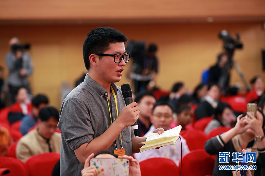 10月23日,十九大新聞中心舉辦集體采訪活動,主題為“打好生態環保攻堅戰”。圖為香港商報記者提問。新華網 郝廣鵬攝