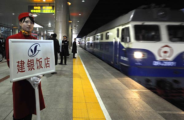 3月1日,內蒙古自治區出席全國政協十一屆四次會議的全國政協委員乘坐K90次列車抵達北京西站。